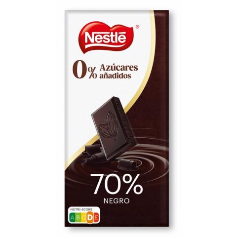 Tableta de chocolate negro 70% Nestlé sin azúcares añadidos. Ideal para que disfrutes del chocolate sin remordimientos!